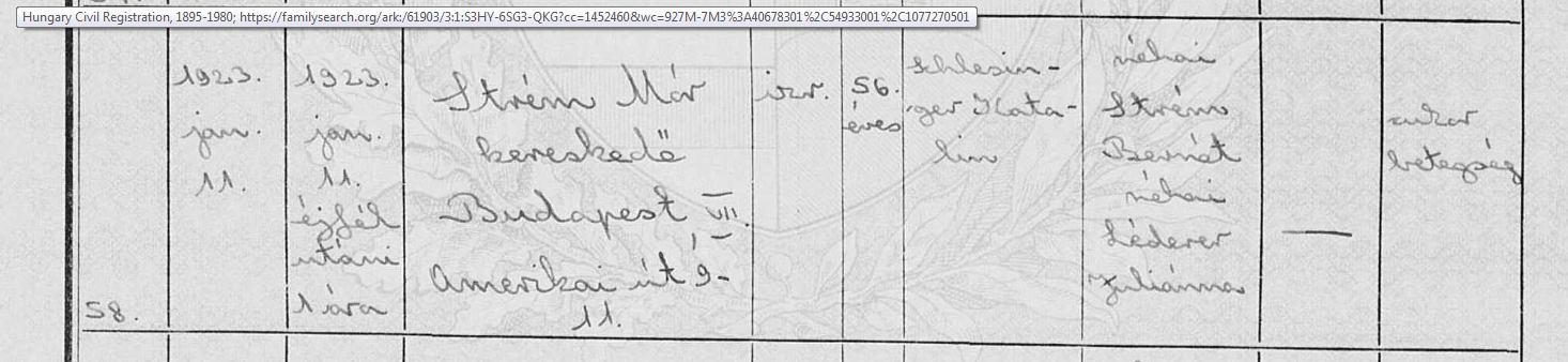 | Married | Husband | Strém Bernát ( * 1831 + 1920 ) | |||||||||||||||||||||||||||