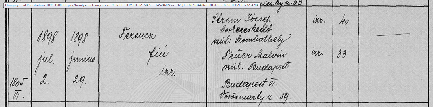 | Strém Ferenc | 1898-06-29 |