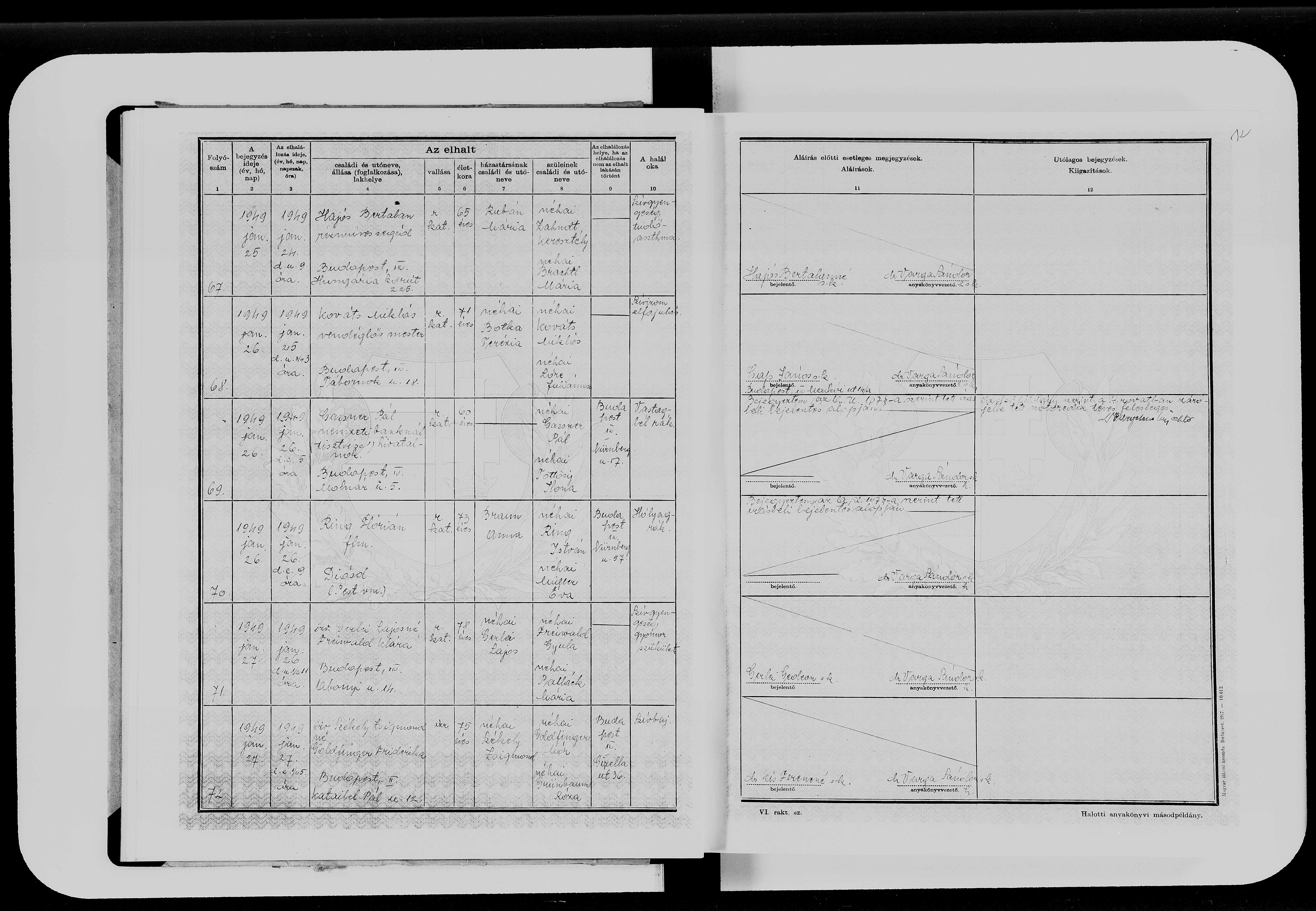 | Death | 1949-01-26 | Budapest, Magyarország | ||