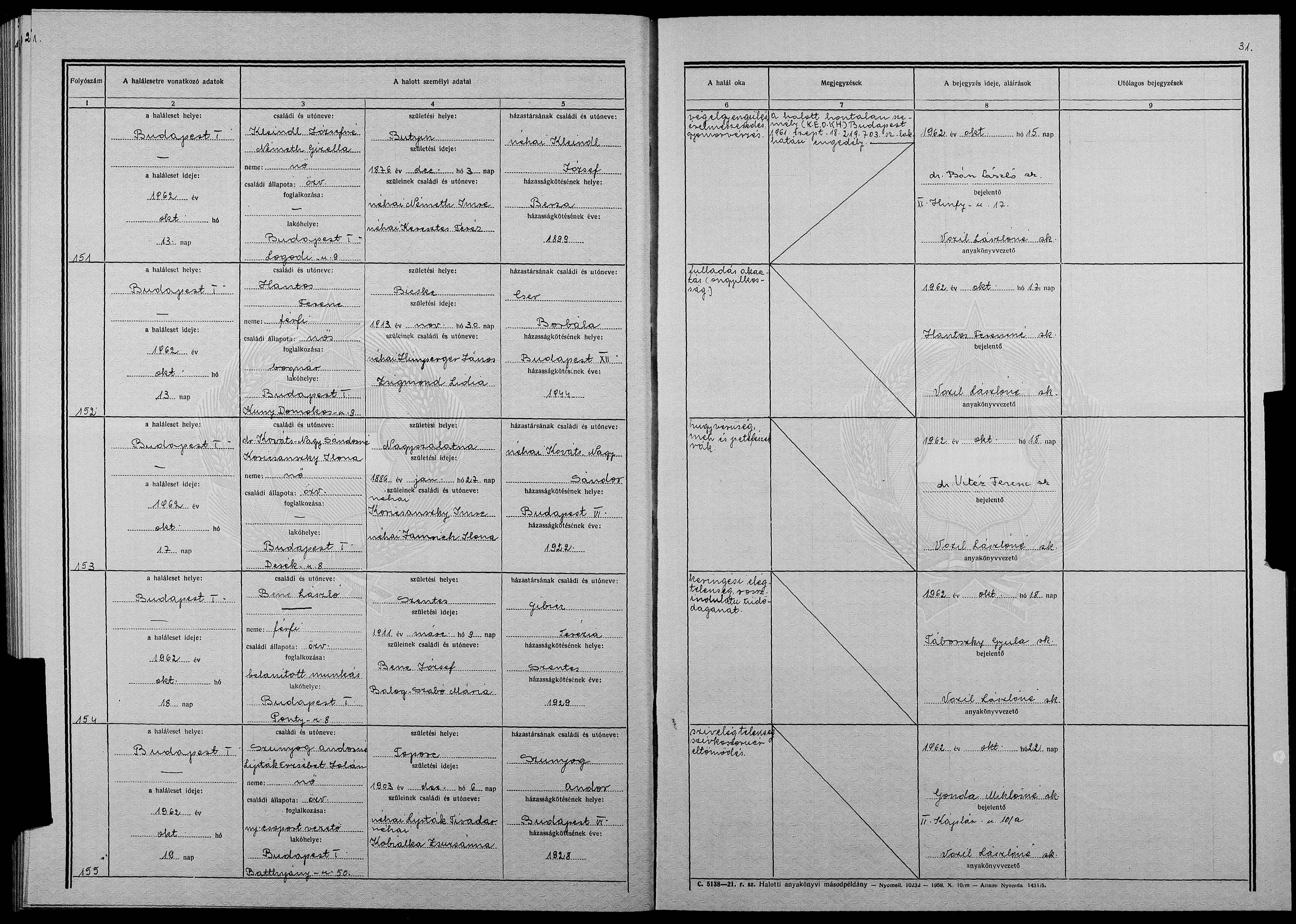 | Death | 1962-10-10 | Budapest, Magyarország | ||