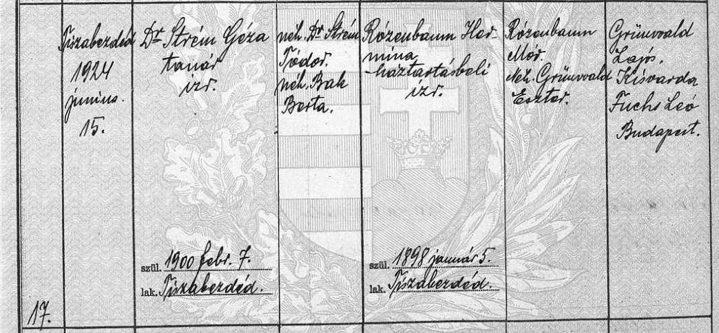 | Brother | Strém Móric | 1867 | 1923-01-11 | |