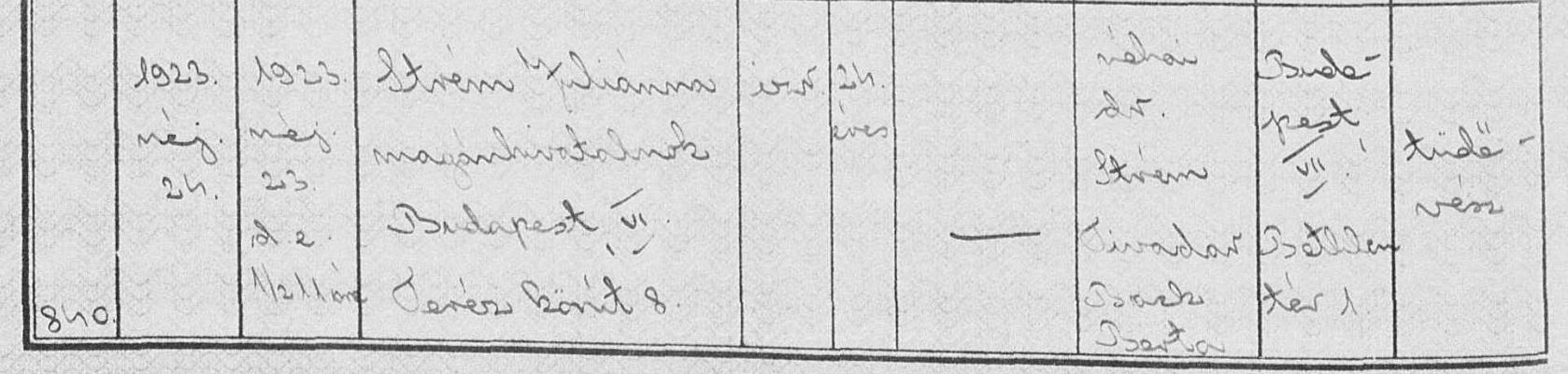 | Strém Júliánna | 1899 | 1923-05-23 |