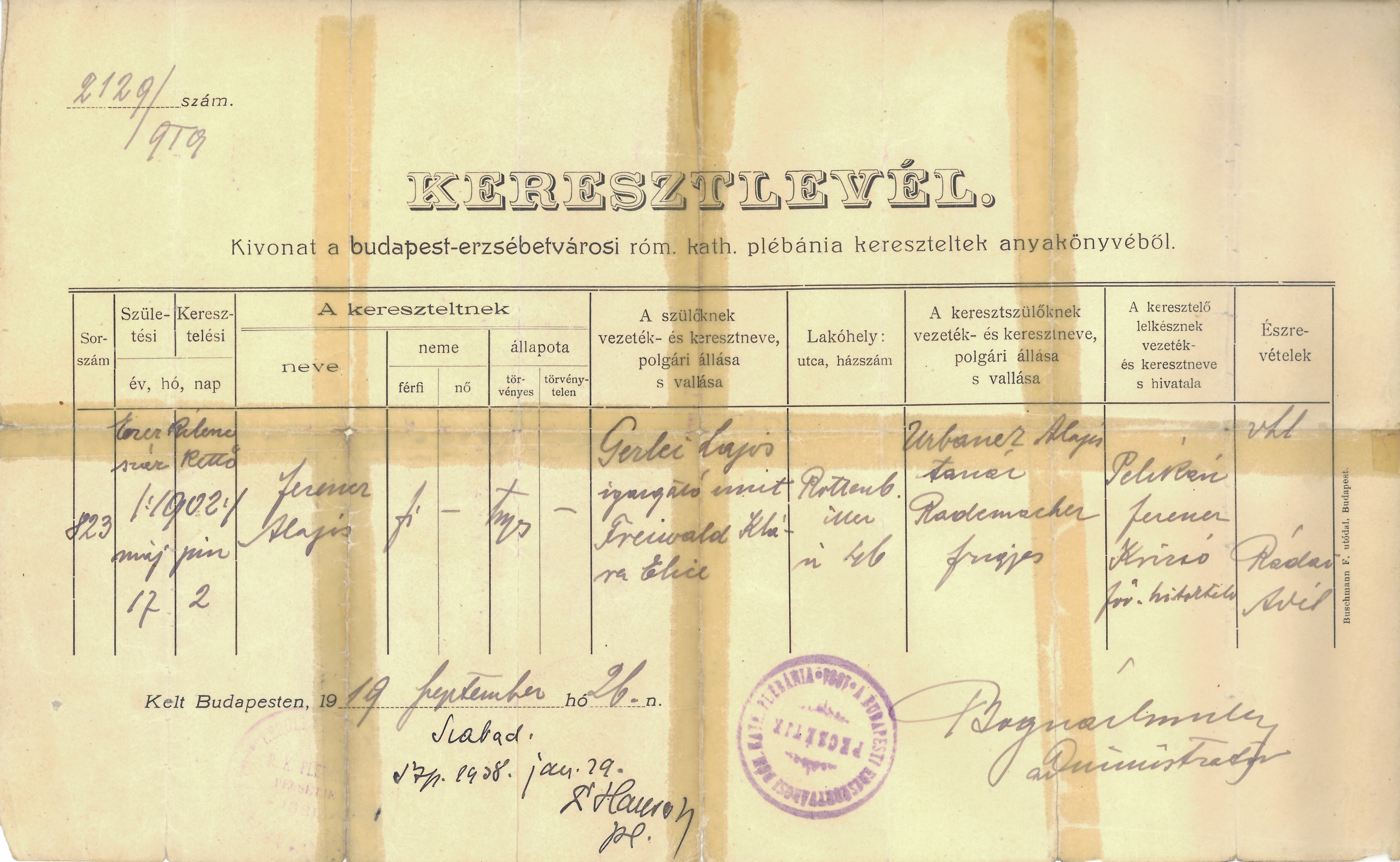 | Father | Gerlei Lajos | 1869-03-09 | 1936-11-30 | |