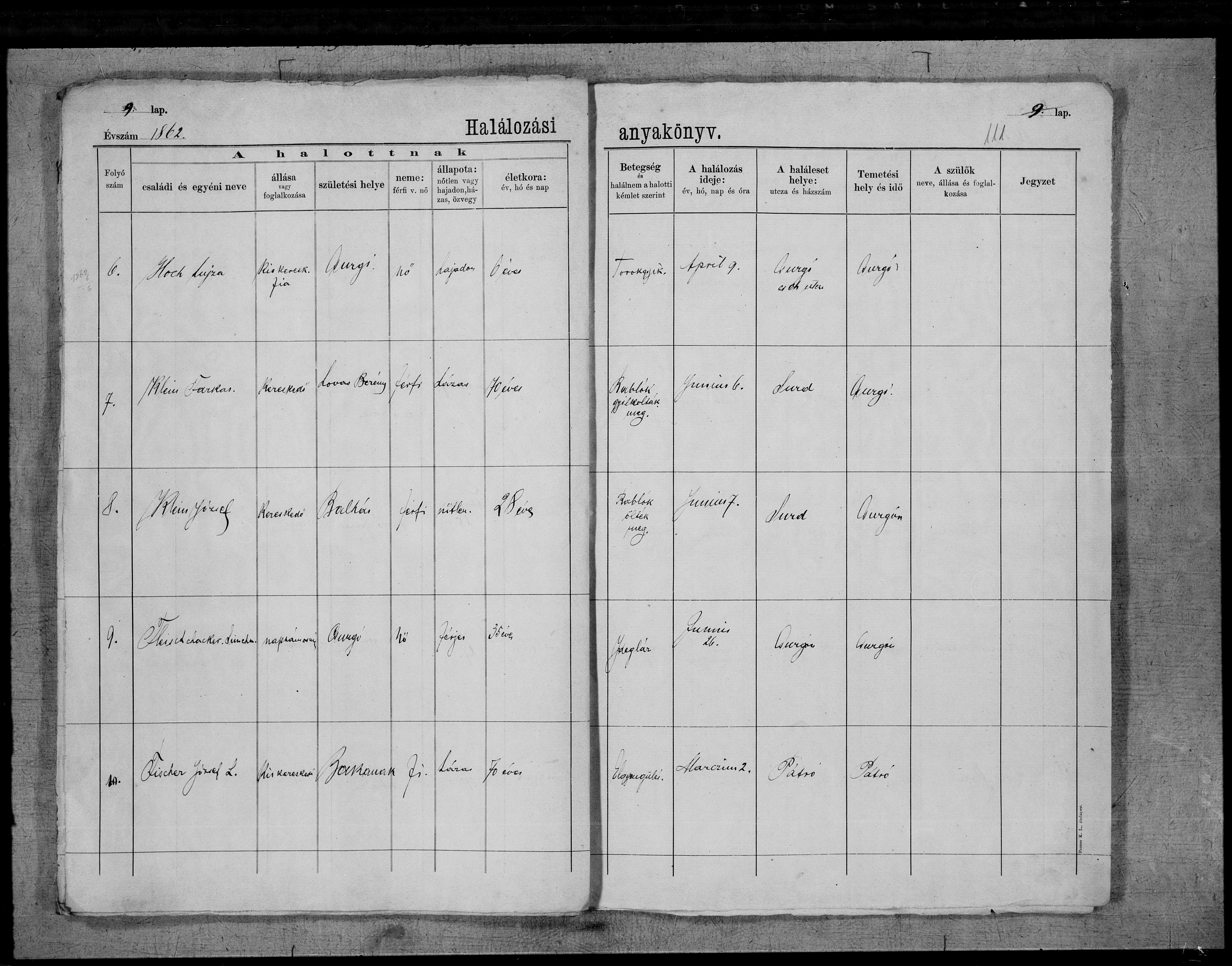 | Death | 1862-06-06 | Surd, Magyarország | ||