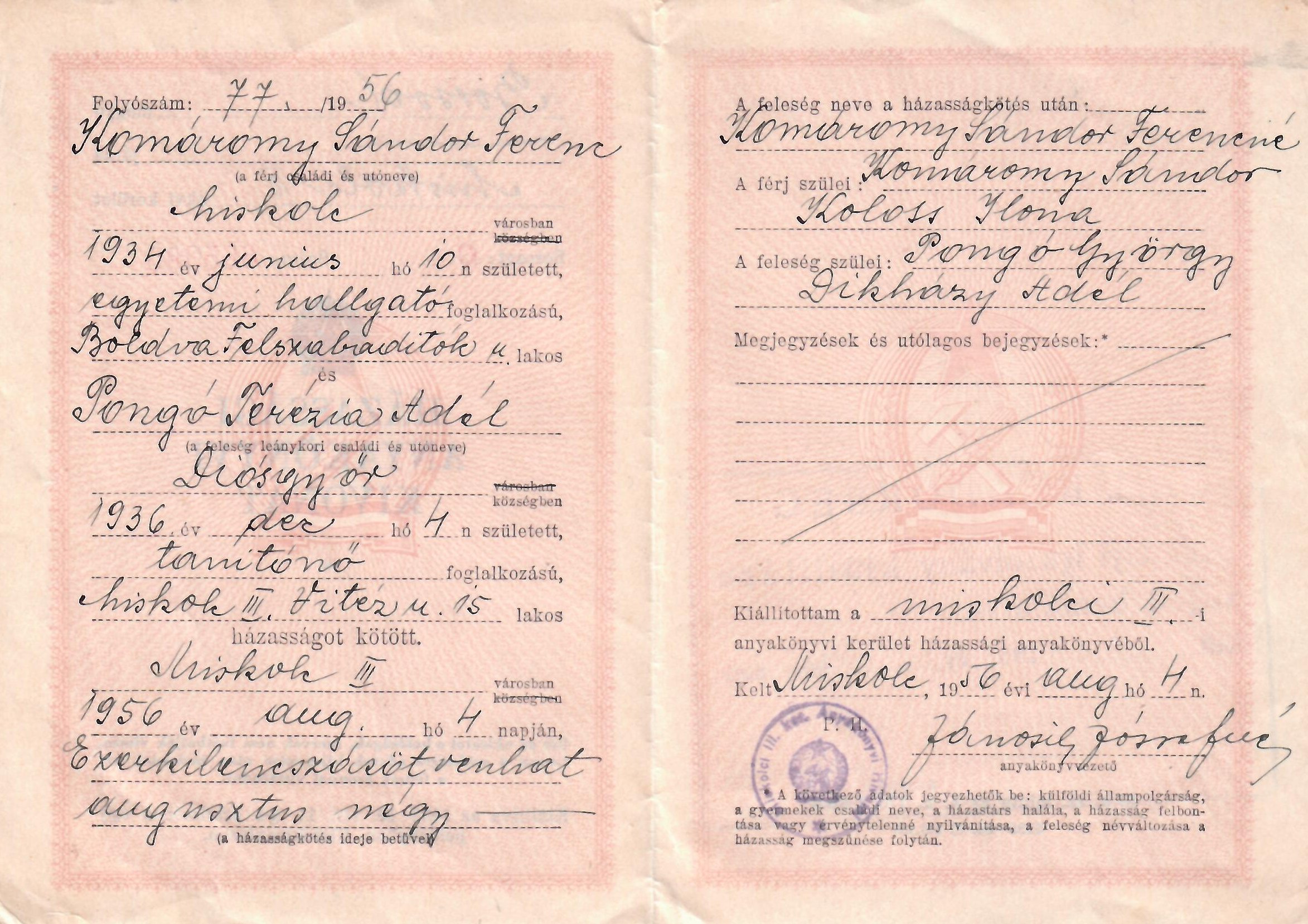 | Married | Husband | Komáromy Sándor Ferenc ( * 1934-06-10 + 2018-02-05 ) | |||||||||||||