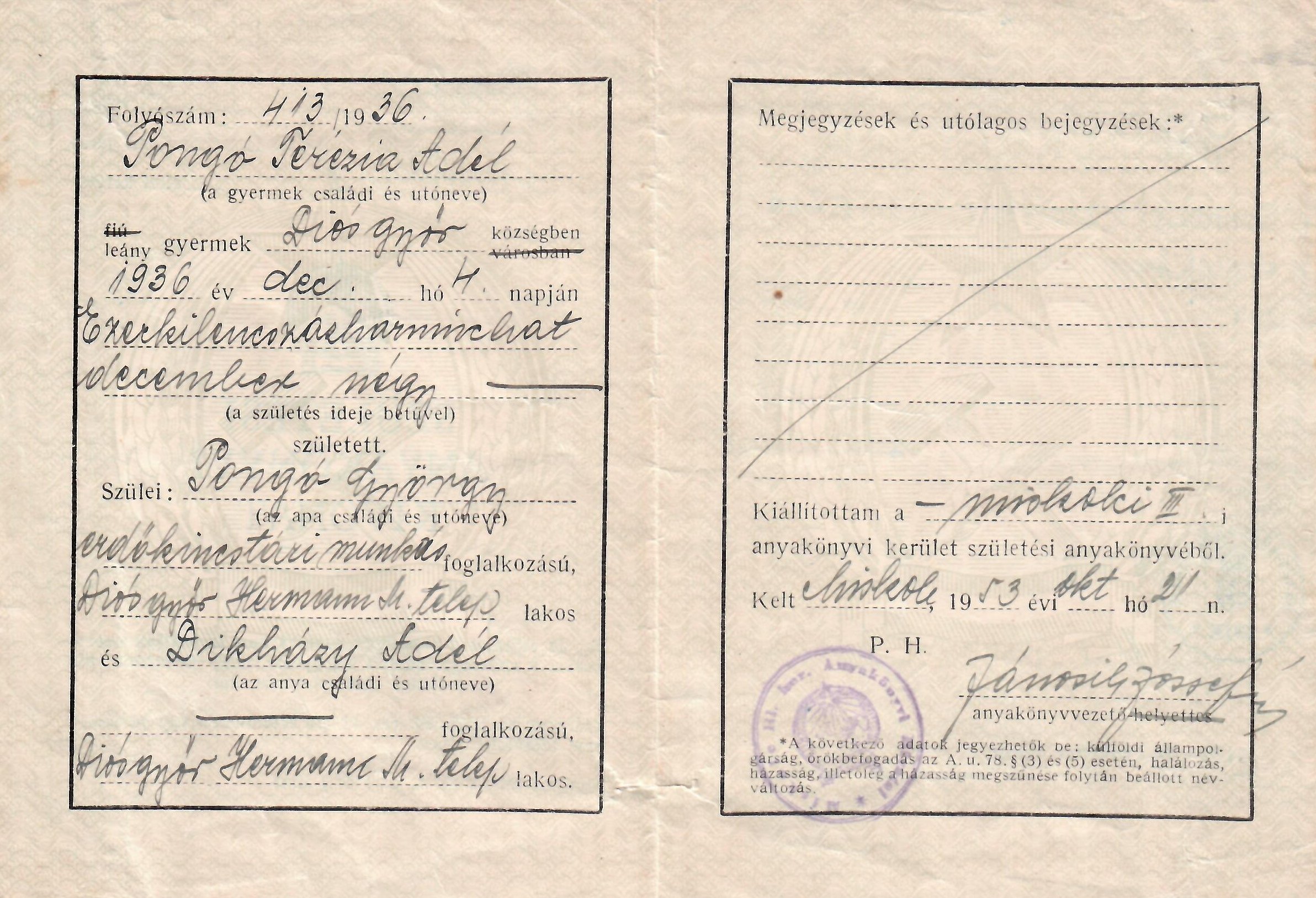 | Pongó Terézia Adél | 1936-12-04 | 2018-07-01 | ||