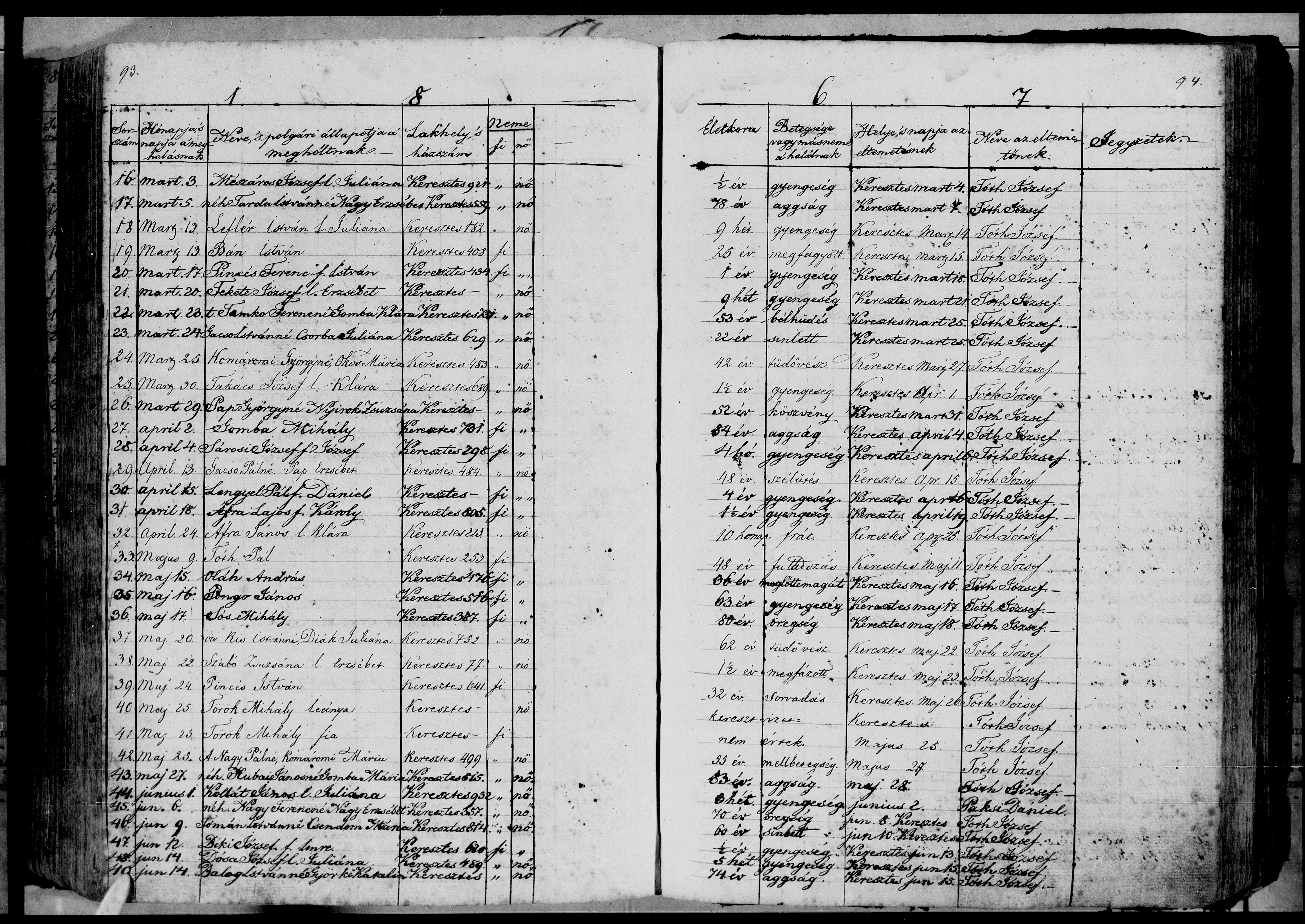 | Pongó Julianna | 1831-11-21 | 1831-11-22 |