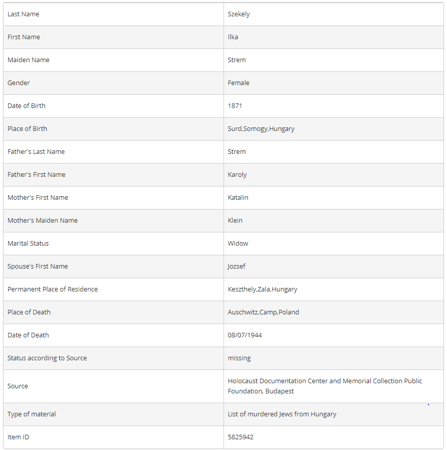 | Death | 1944-07-08 | Auswitz, Lengyelország | ||