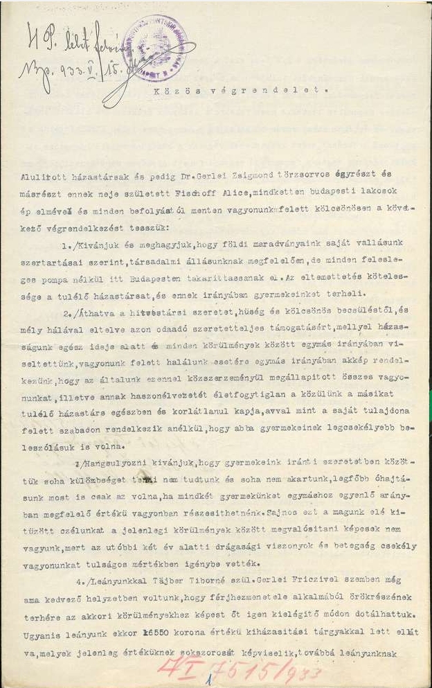 Family of Gerlei Zsigmond and Fischoff Alice |