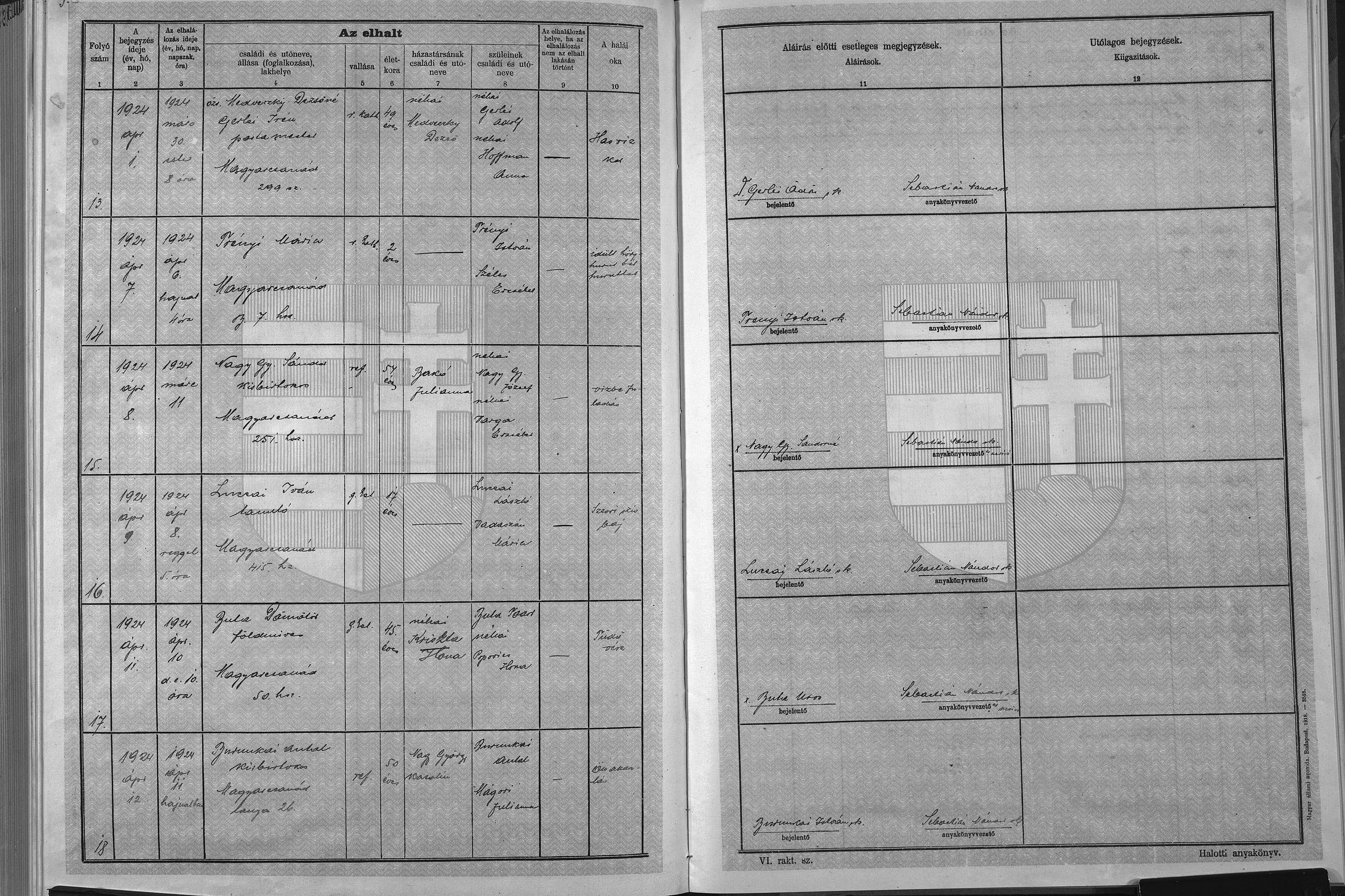 | Death | 1924-03-30 | Magyarcsanád, Magyarország | ||
