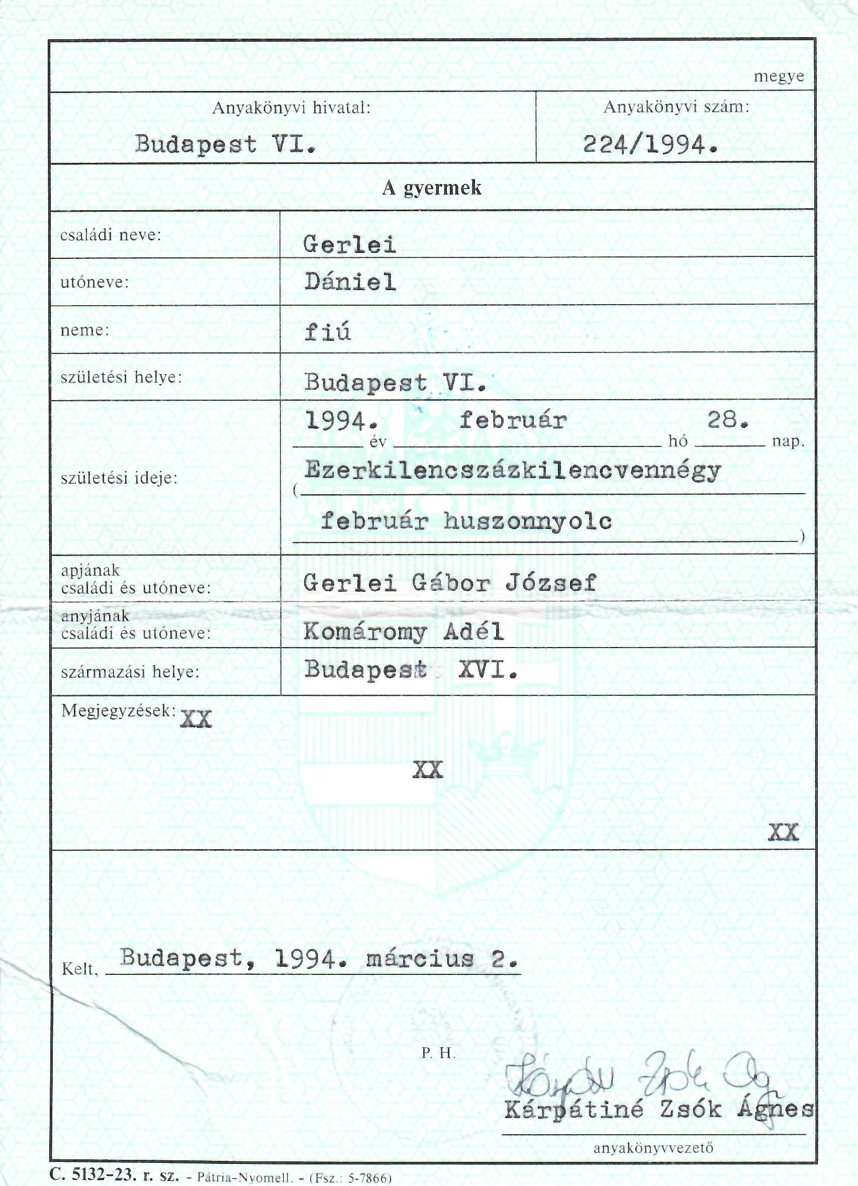| Father | Komáromy Sándor Ferenc | 1934-06-10 | 2018-02-05 | |