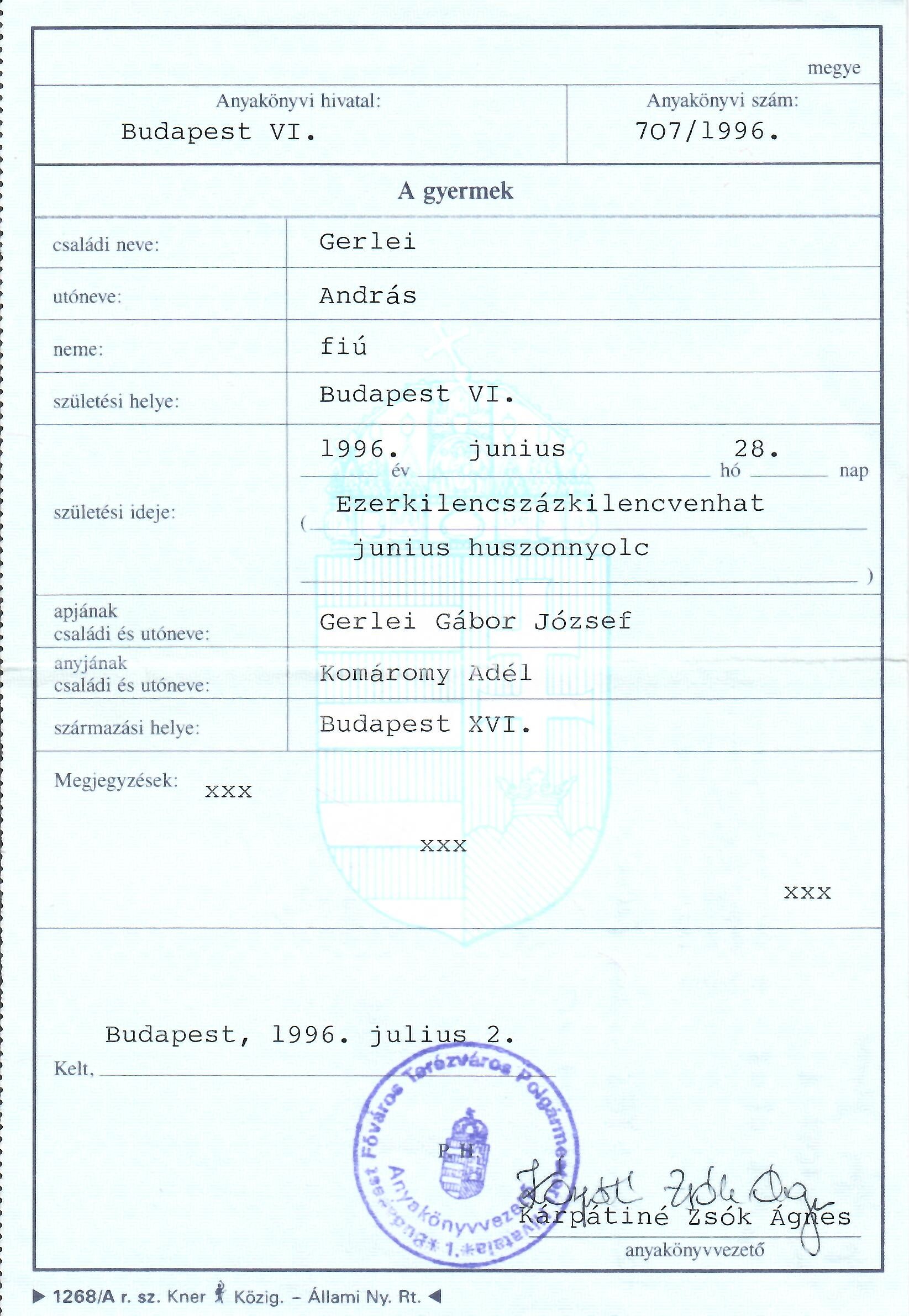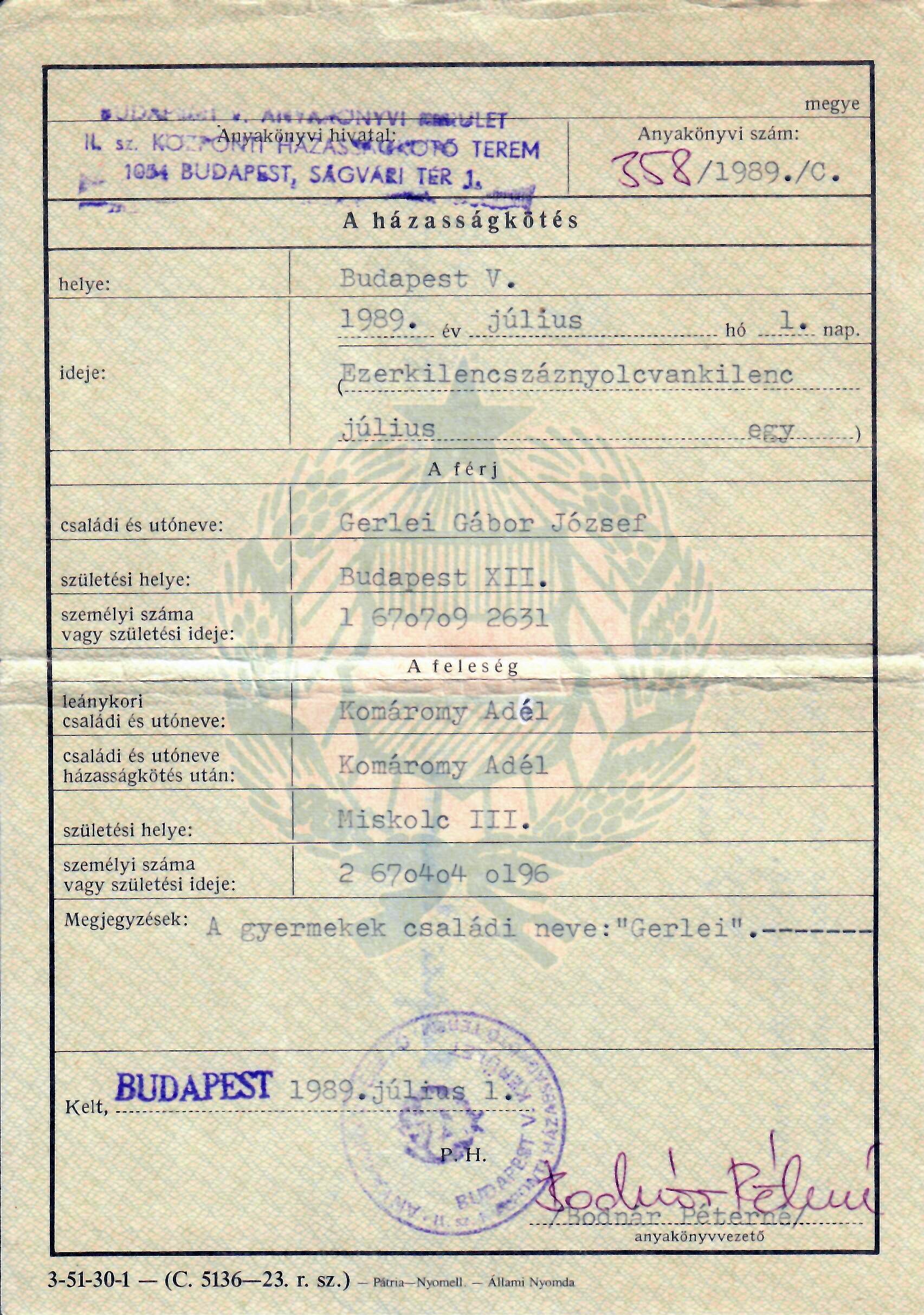| Married | Husband | Gerlei Gábor ( * 1967-07-09 + ... ) | |||||||||||||