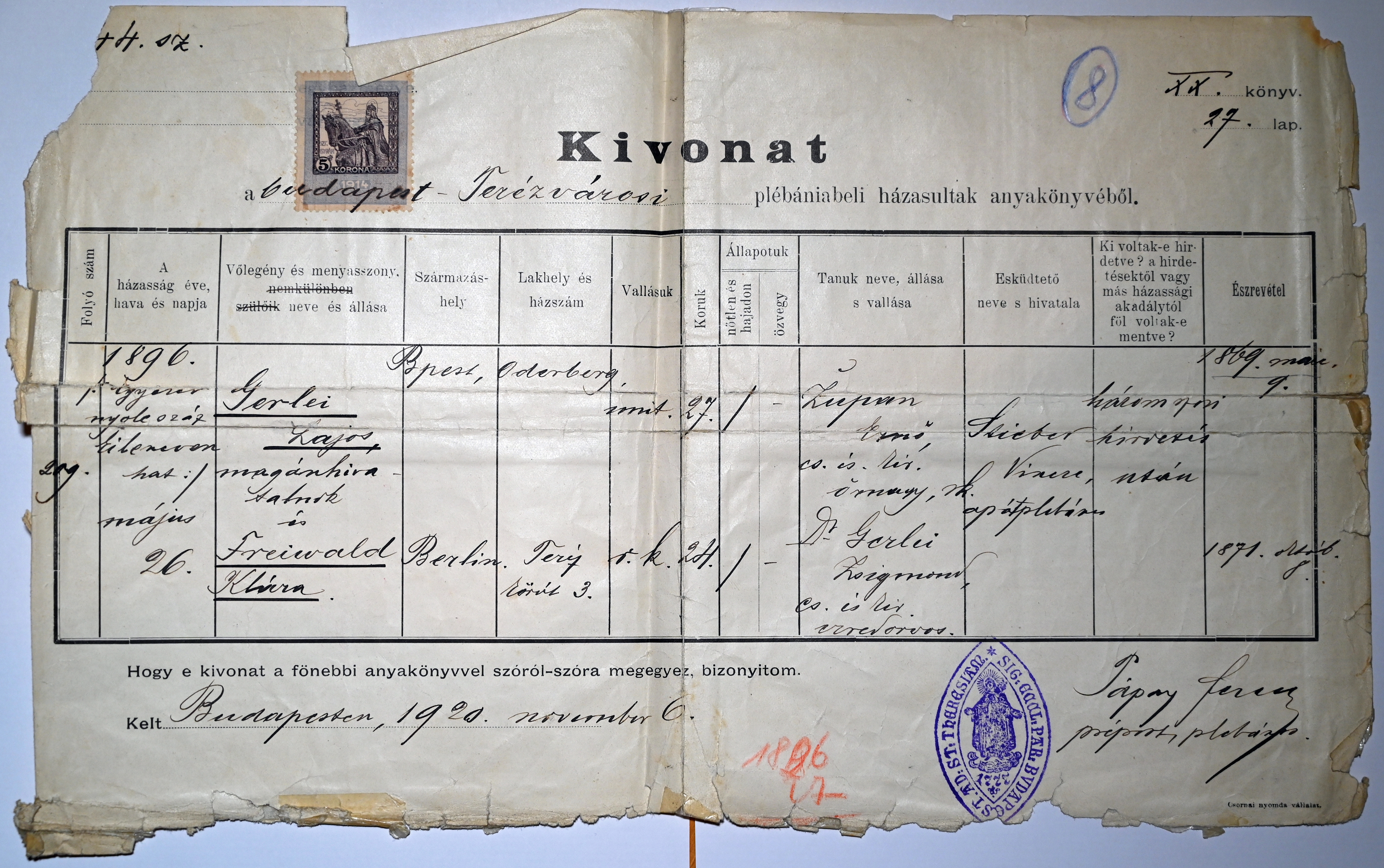 | Married | Wife | Freiwald Klára Alice ( * 1871-10-08 + 1949-01-26 ) | |||||||||||||||