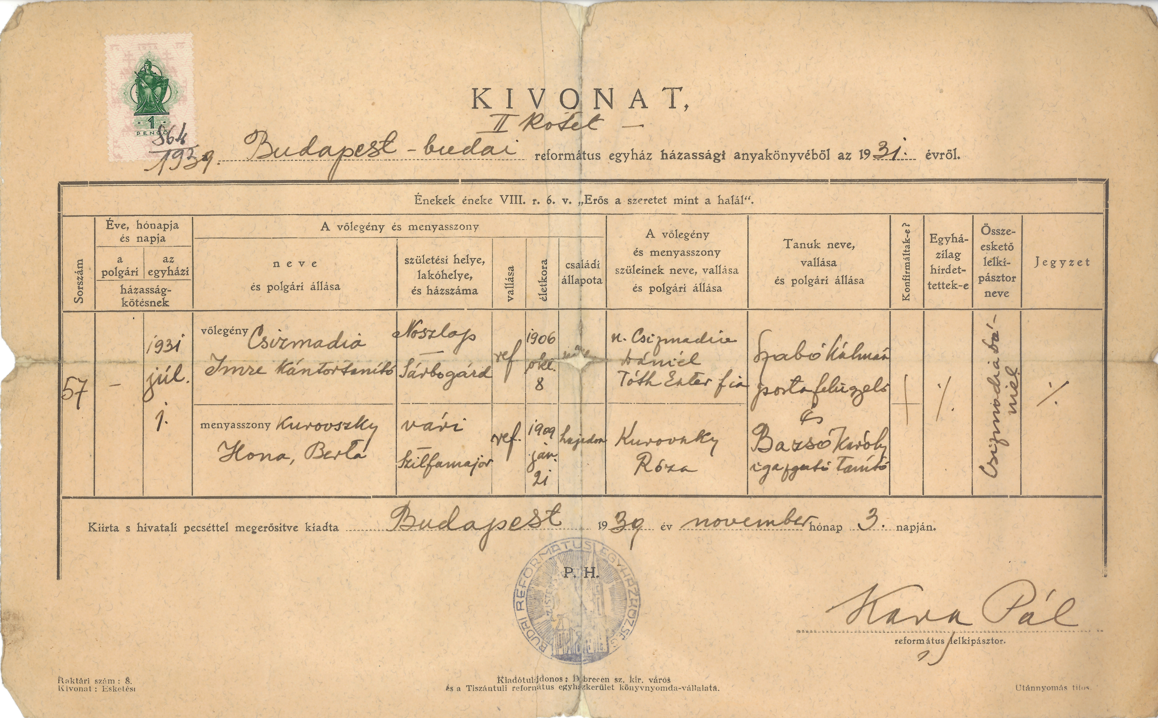 | Married | Husband | Csizmadia Dániel ( * 1869-01-03 + 1928-11-16 ) | ||||||||||||||||||