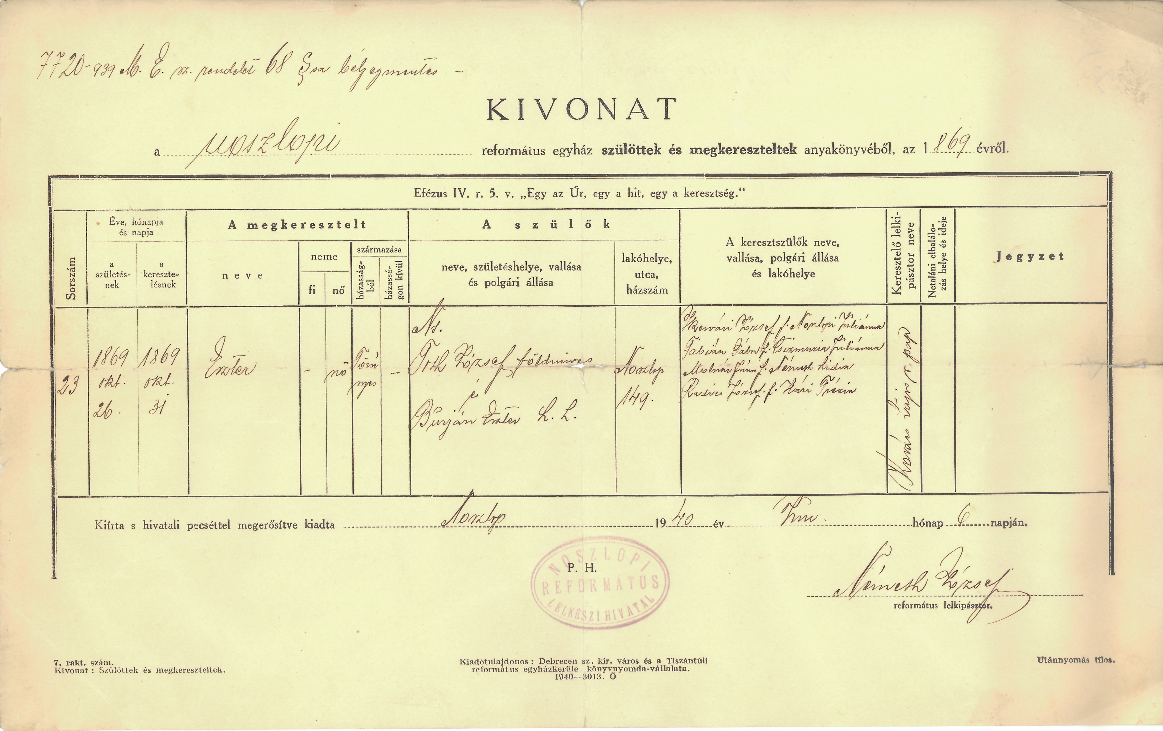 | Birth | 1869-10-26 | Noszlop, Magyarország | ||
