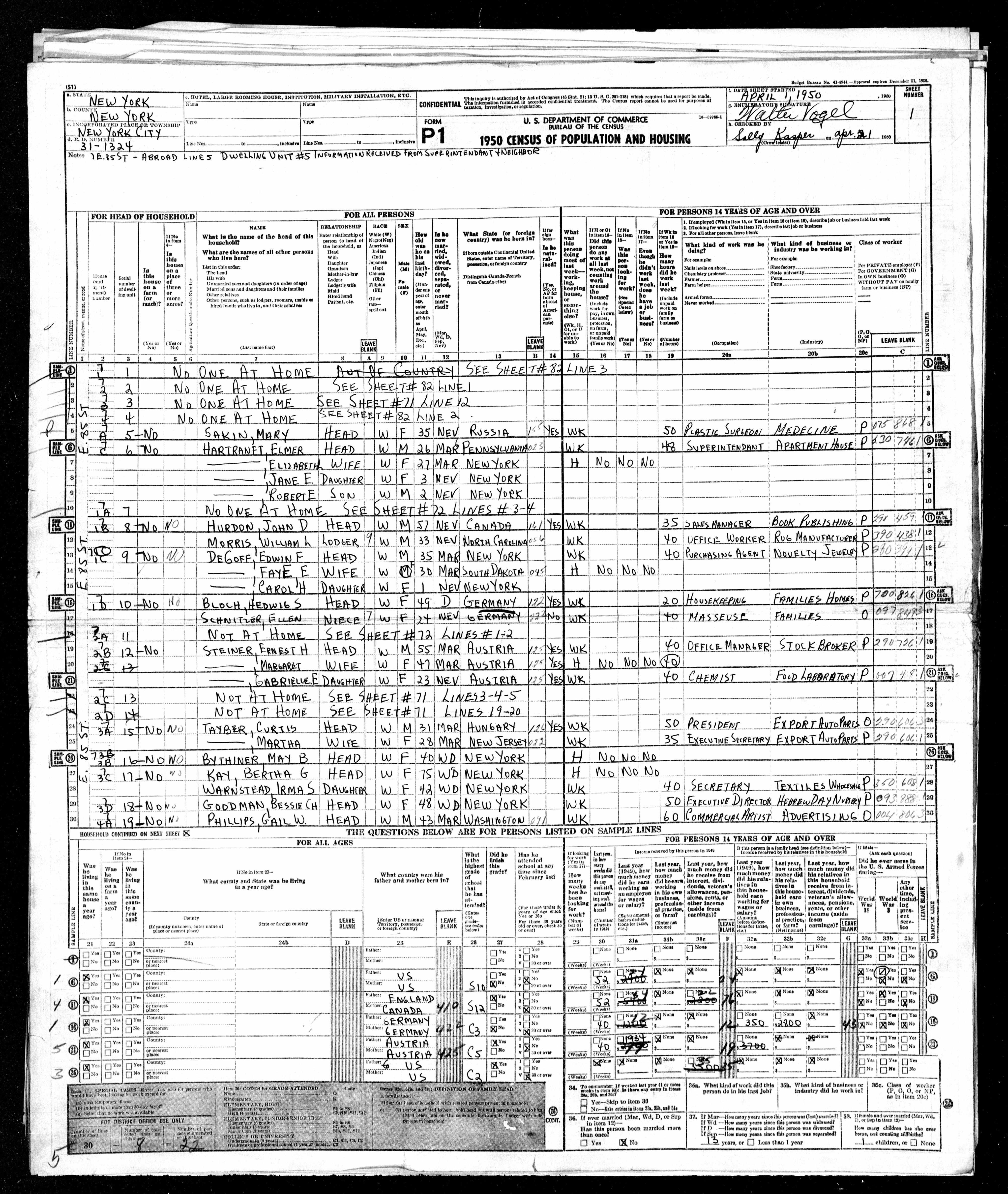 Household Role Sex Age Birthplace