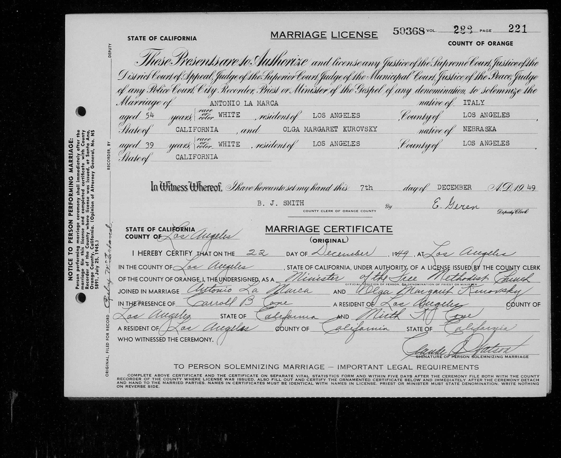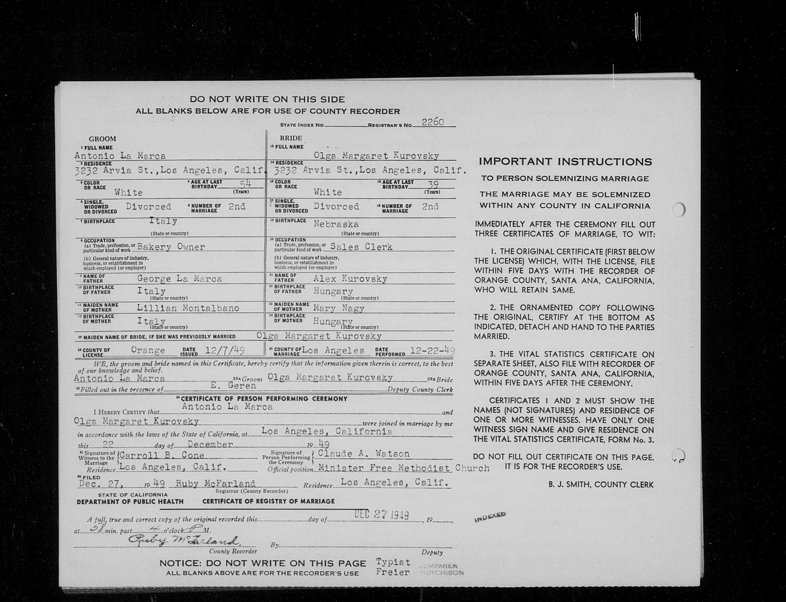 "California Death Index, 1940-1997," database, FamilySearch (https://familysearch.org/ark:/61903/1:1:VPSZ-M4C : 26 November 2014), Olga Margaret Lamarca, 17 Mar 1993; Department of Public Health Services, Sacramento.