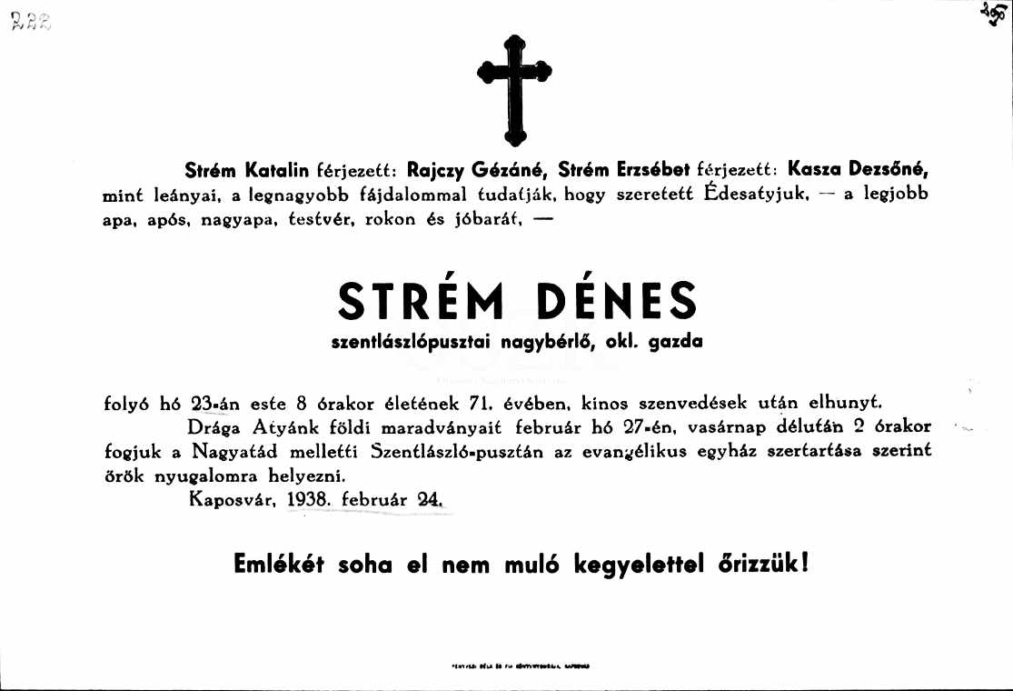 | Strém Dénes | 1868-02-18 | 1938-02-23 | ||