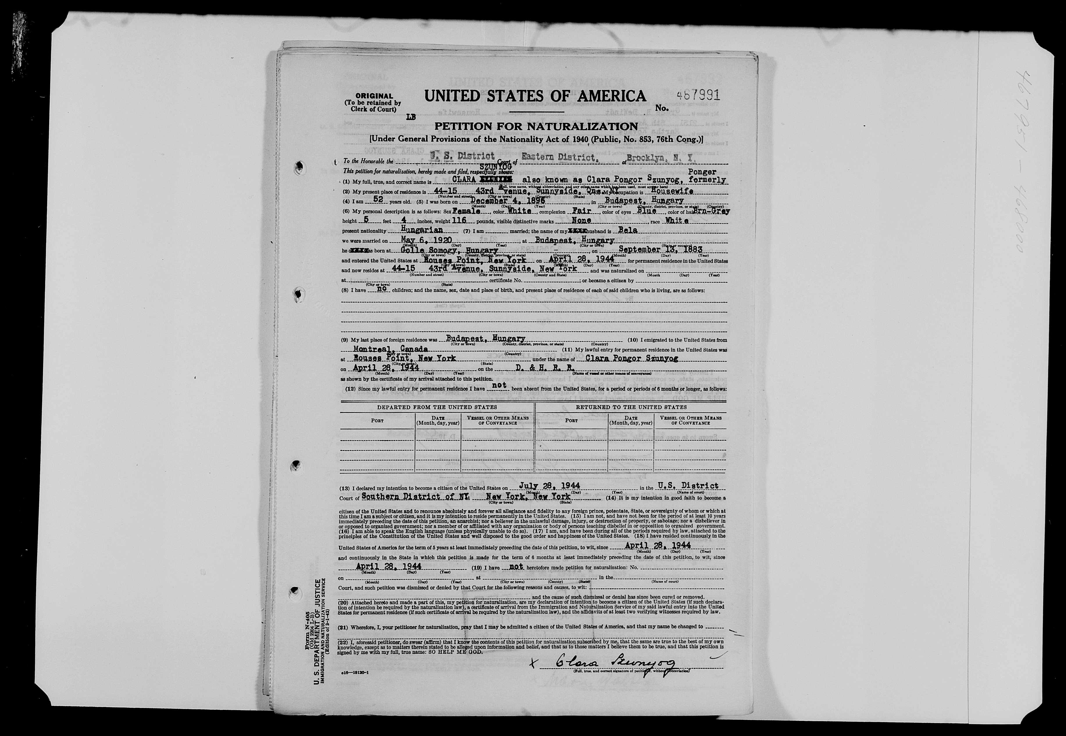 Name Note: Name and form dates: Claim: CLARA SZUNYOG (02 Apr 1956)
