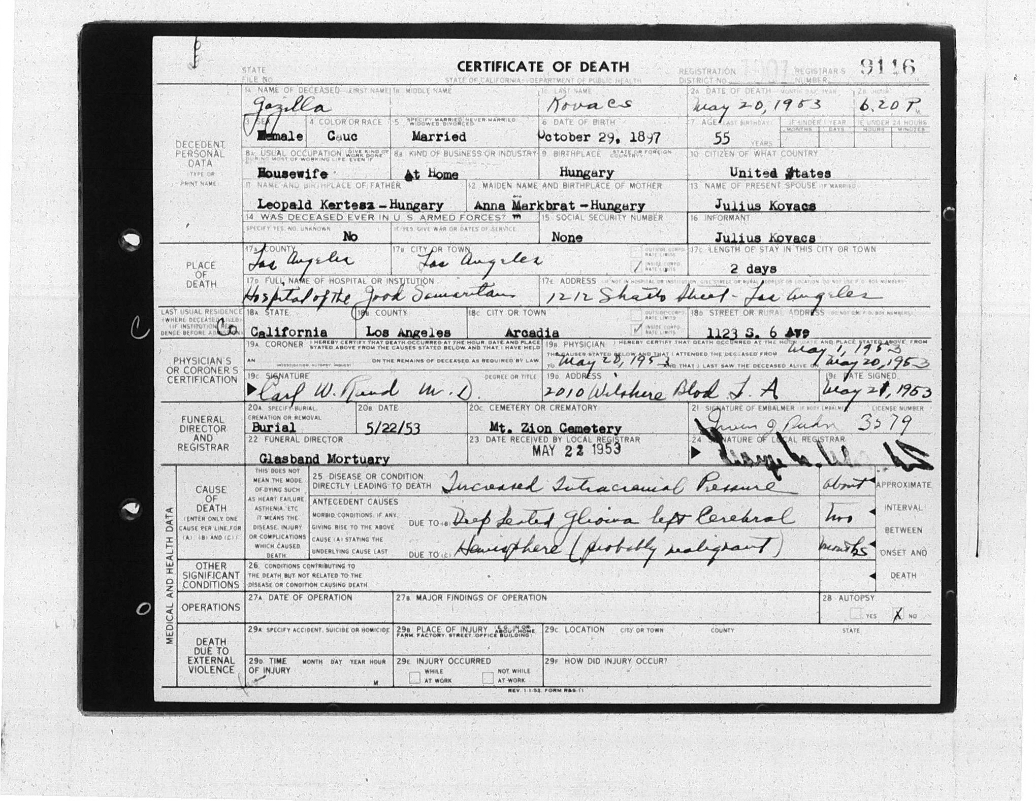 | Kertész Gizella | 1897-10-29 | 1953-05-20 |