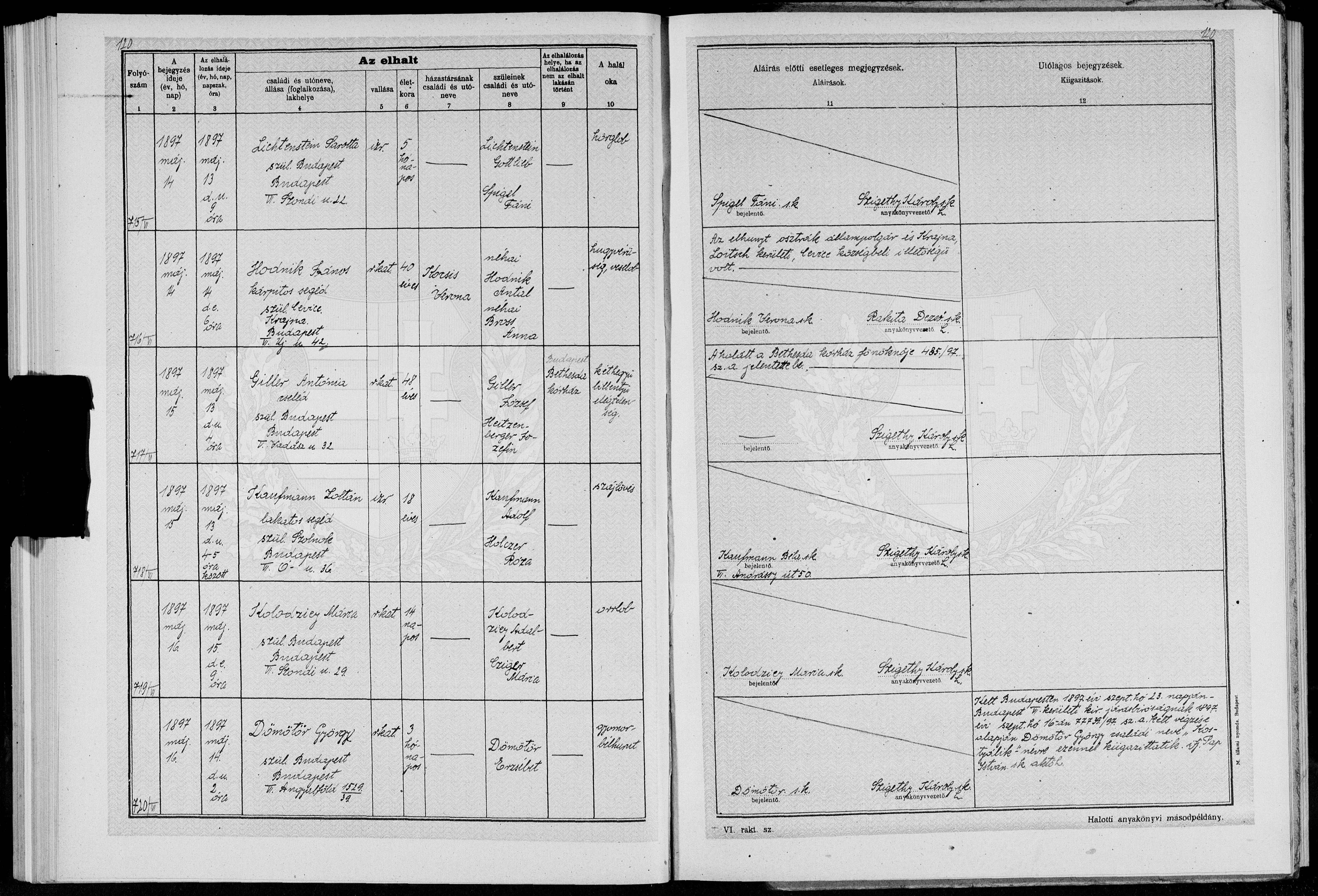 | Kaufmann Zoltán | 1879 | 1897-05-13 |